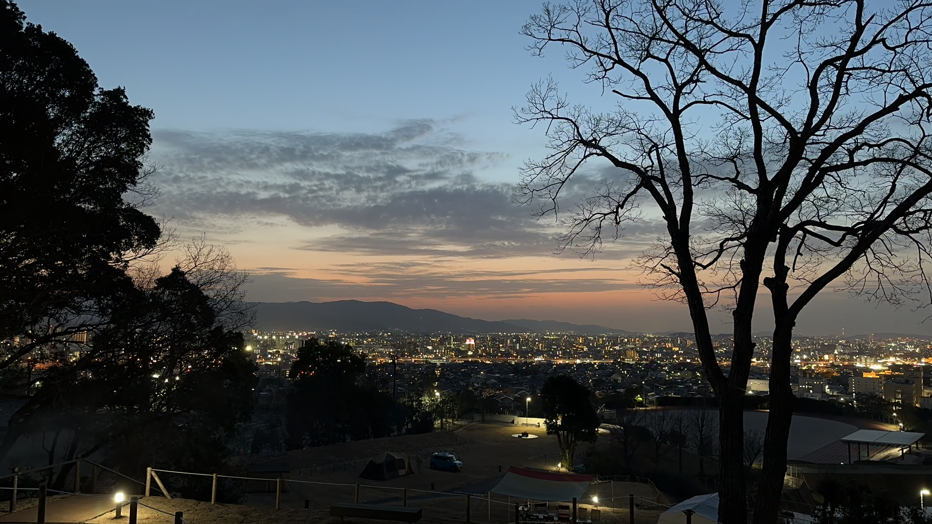 キャンプ場の夕景から夜景へ…タイムラプス映像